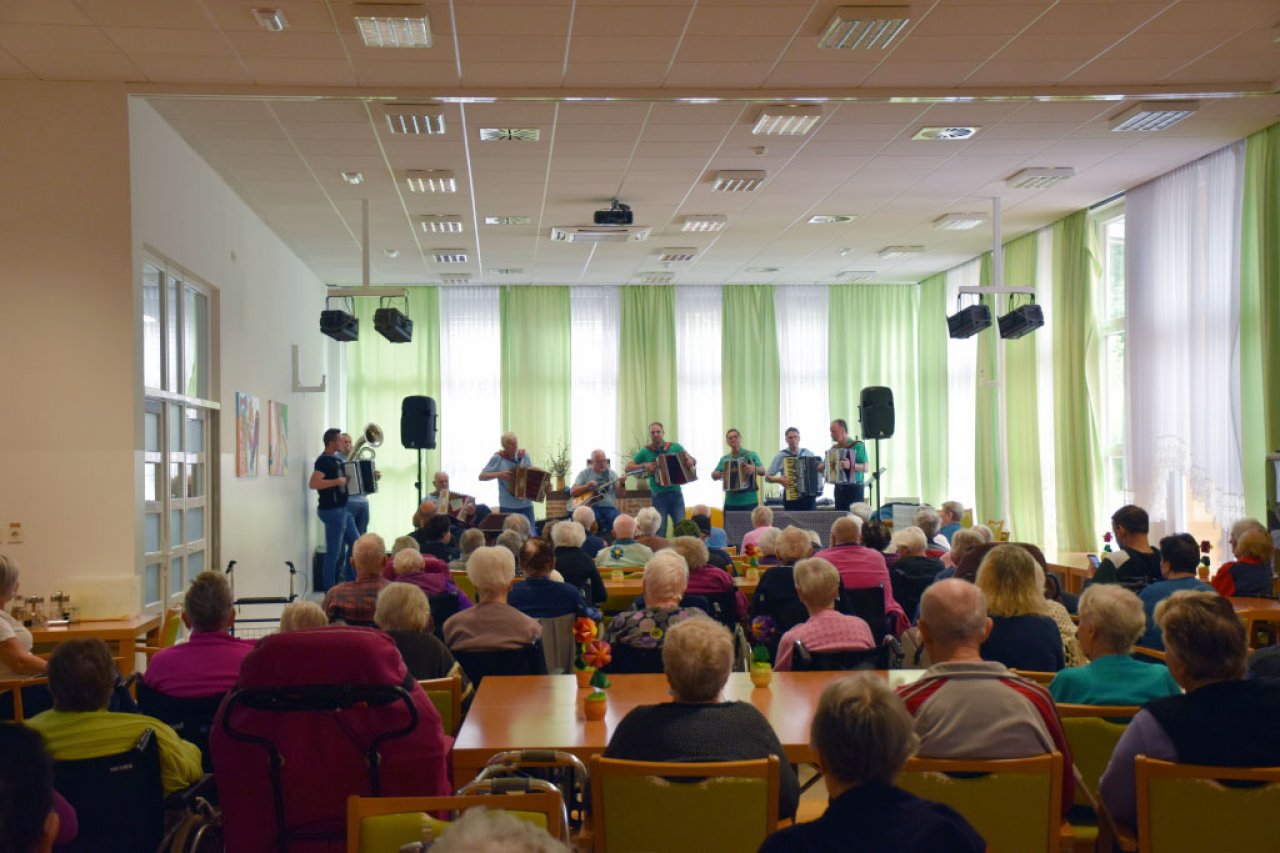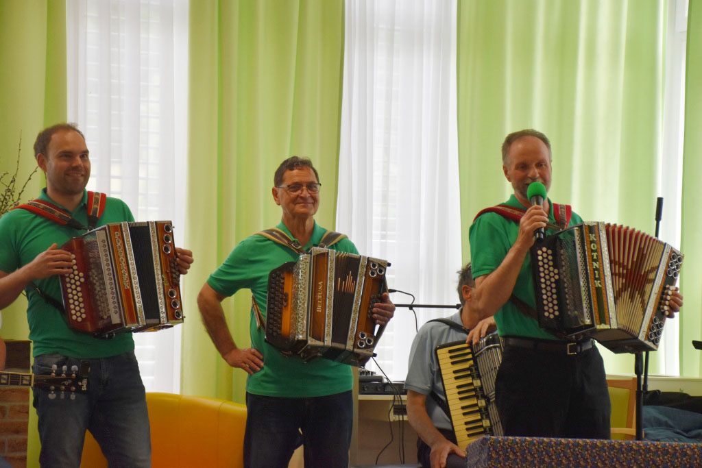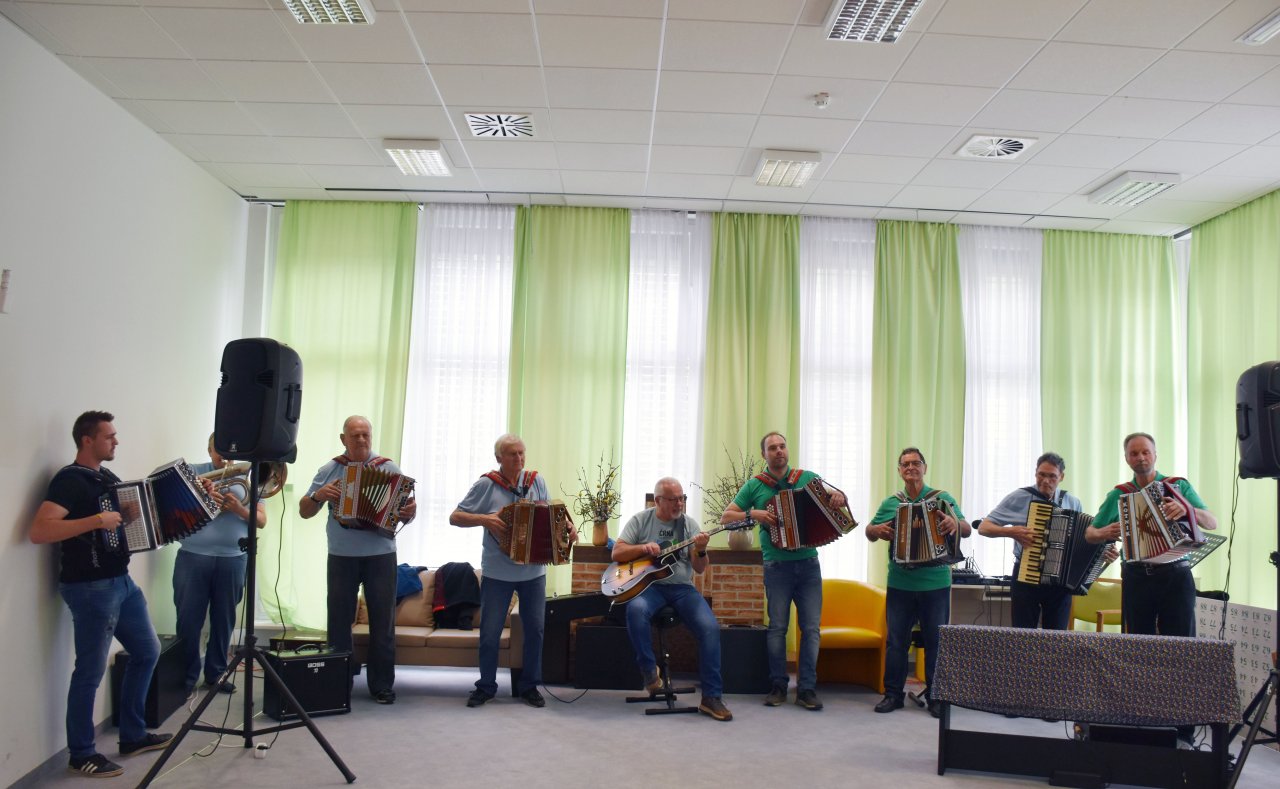 Na prijetno četrtkovo popoldne nam je veselje in glasbo v hišo prinesel Harmonikarski orkester KD Prežihov Voranc z Raven na Koroškem in nam popestril naš vsakdan.