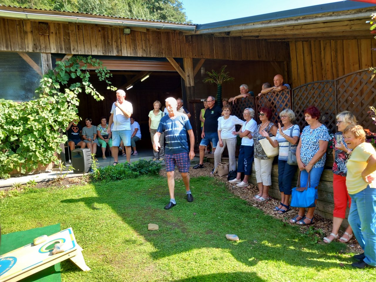 Prijetno druženje ob dobri hrani s prijatelji in znanci je popestrila skupina Bica bend, ki je z lepo zapetimi narodnimi pesmimi ob spremljavi kar dveh harmonikarjev poskrbela za dobro voljo. Športni navdušenci so se lahko pomerili v novi disciplini »štrbunk«, ki jo je odlično vodil Bojan iz Društva upokojencev Prevalje. Bojan je tudi predsednik Komisije za šport v Koroški pokrajinski zvezi društev upokojencev in vedno pripravljen na sodelovanje.