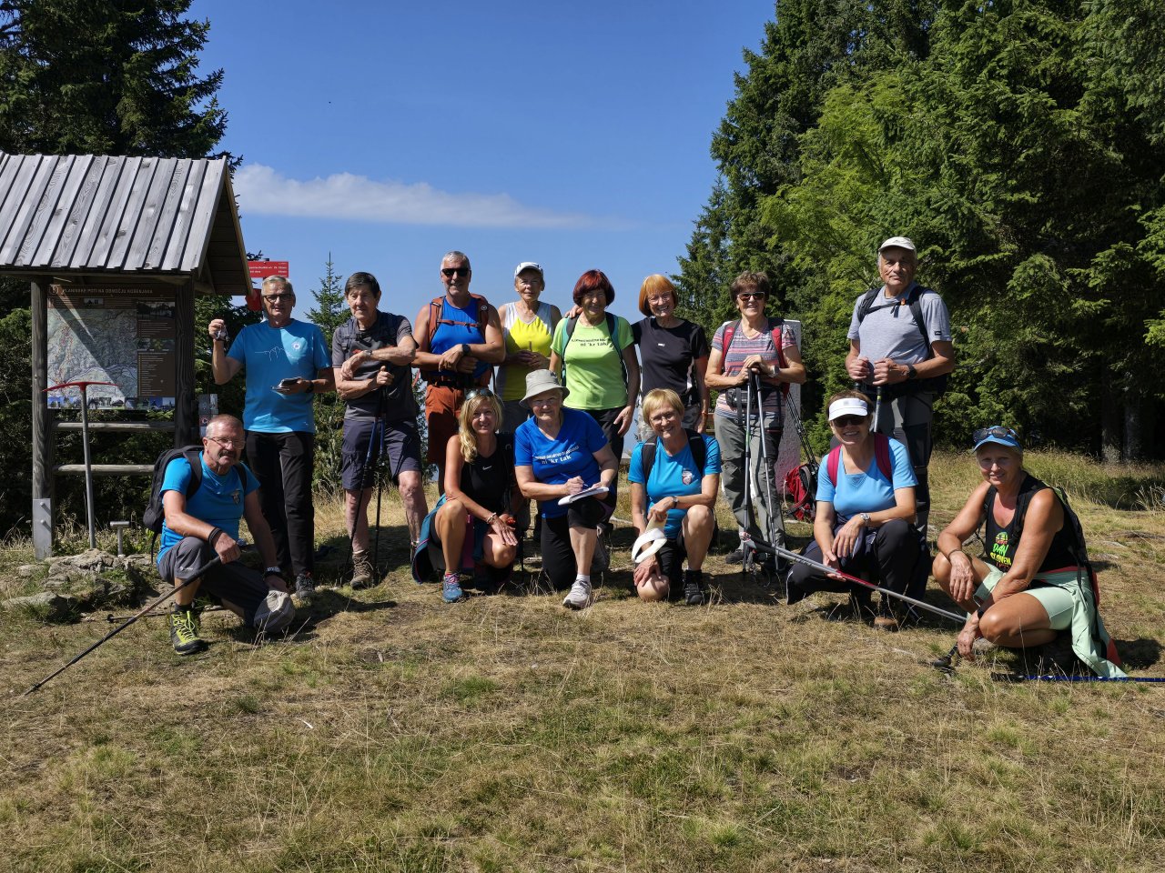 Zadnji torek smo se na pobudo Janka in Sabine Lorber podali na krožno turo po Košenjaku. Zbrali smo se pri Jažovi bajti na Goriškem Vrhu in se v dobrem razpoloženju podali na pot. Janko nas je najprej vodil mimo vikend naselja po cesti do stare karavle tik ob državni meji, kjer nas je večina bila prvič. Karavla je seveda sedaj v zasebni lasti in lepo urejena. Nadaljevali smo po strmi poti, prestopili državno mejo in spet prišli do zložne gozdne ceste, ki nas je vodila vse do vetrnih elektrarn na avstrijski strani. Tam smo se obrnili in v lahnem tempu kmalu dospeli do Roshute, kjer smo si privoščili kratek počitek in malico. Okrepčani smo z lahkoto prišli do vrha Košenjaka. Sledilo je obvezno fotografiranje in nato spust po označeni planinski poti po Goriškem Vrhu vse do izhodišča pri Jažovi bajti. Gostitelja sta nas presenetila s pogostitvijo in dobro kapljico, za kar se jima zahvaljujemo.