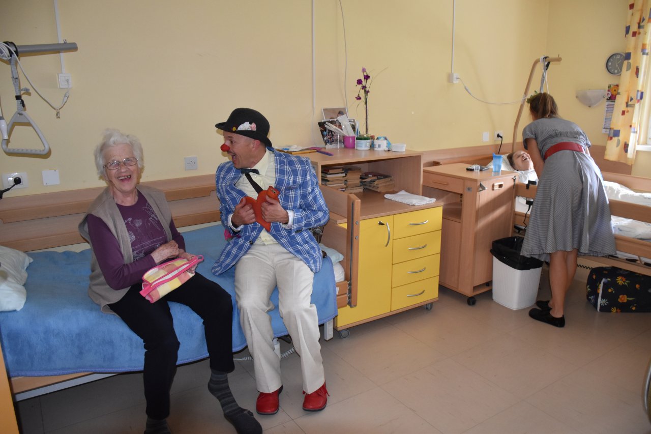 Obiskala sta nas klovna iz skupine Rdečih noskov - klovnov zdravnikov, ki s svojim pristopom širijo veselje in toplino med starejšimi občani.